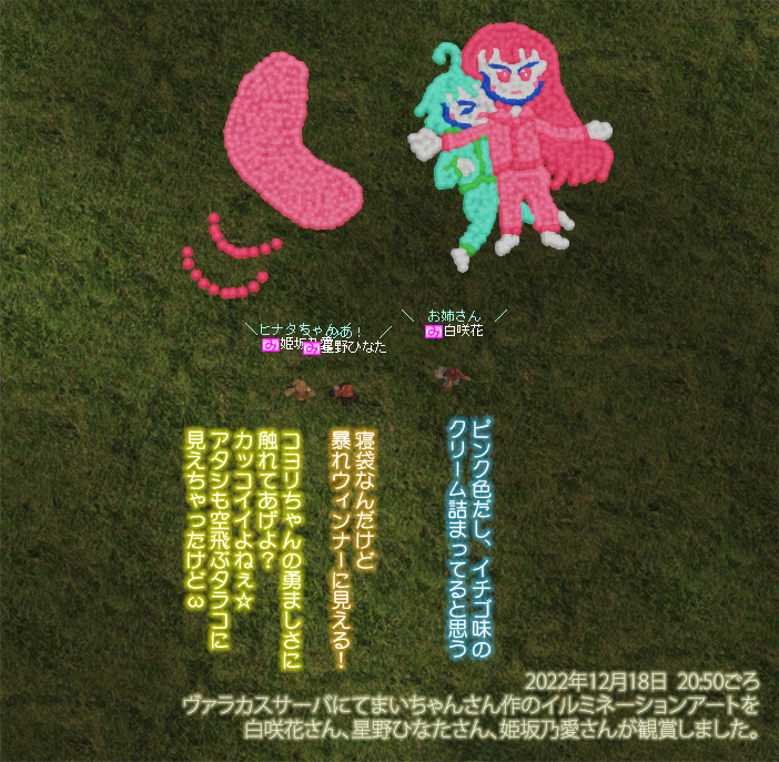 なお、まいちゃんさんが今回もお話の内容をモチーフとしたイルミネーションアートを作ってくださり、その製作過程の記事を掲載してくださったようです。 →