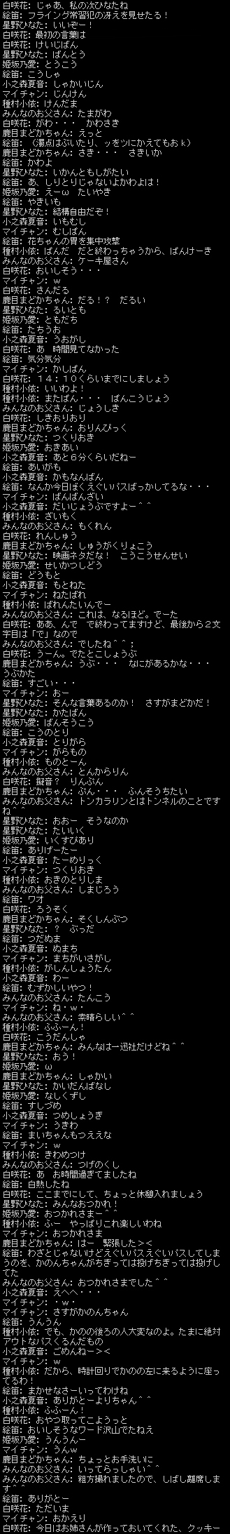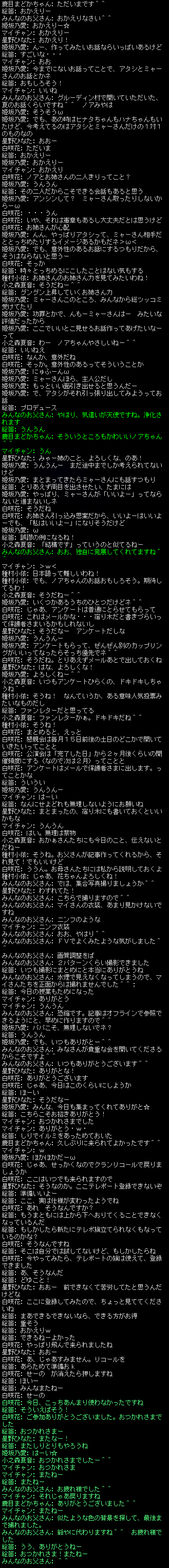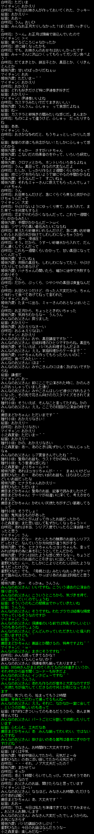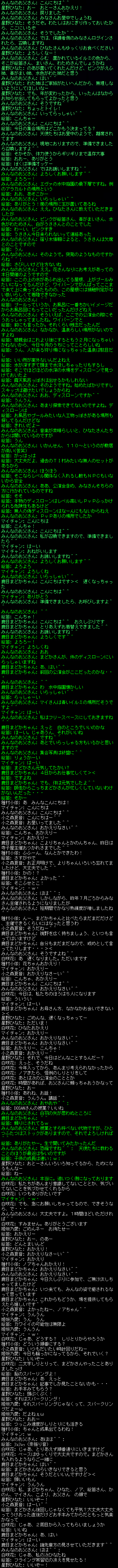 スクリーンショットはみんなのお父さんが撮影したものになります。当日の様子が分かるチャットログを時系列で繋げて分割しております。