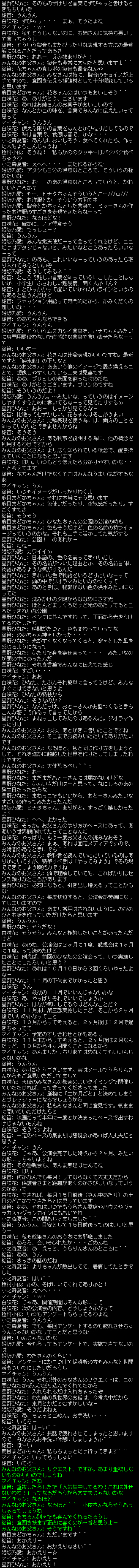 ※懇親会では「保護者さまにすべて見せていく」という主旨の元、天使たちの舞台裏となる公演会部側血盟チャットでのやり取りはありませんでした。