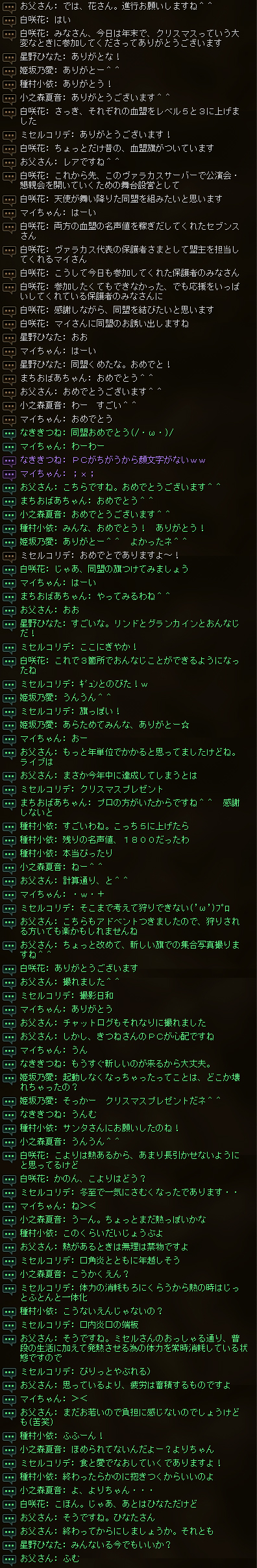 ※懇親会は毎回恒例となりますが「保護者さまにすべて見せていく」という主旨の元、天使たちの舞台裏となる公演会部側血盟チャットでのやり取りはありませんでした。