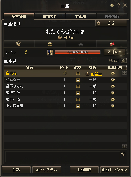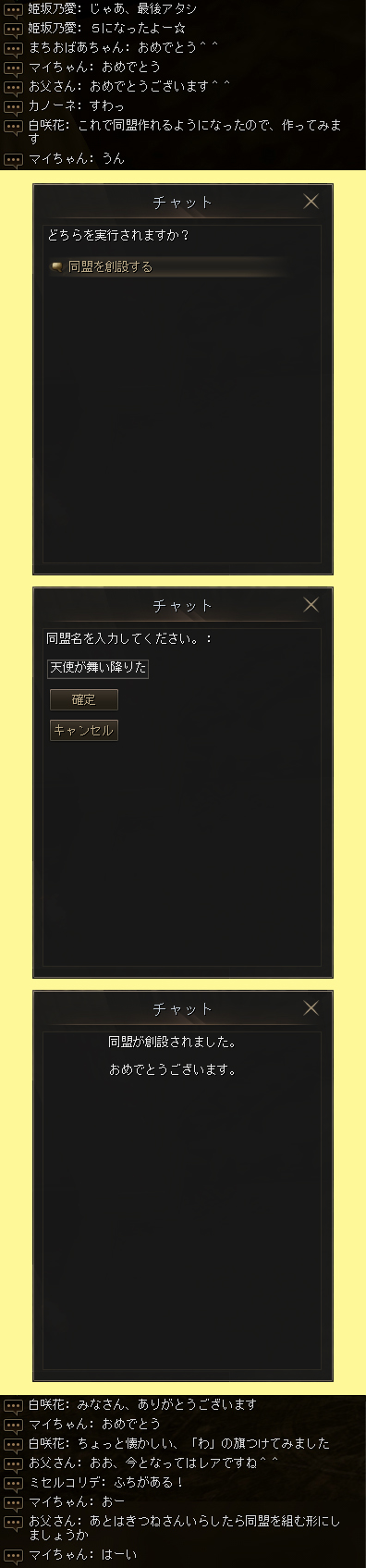 公演会部がレベル5となった後。同盟主となる花さんにより「天使が舞い降りた」同盟が創設されました。