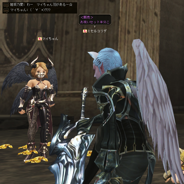 一方の白き羽根を持つミセルコリデさんは途中でネコ耳がデリバリーされていまして、それを装着されています。