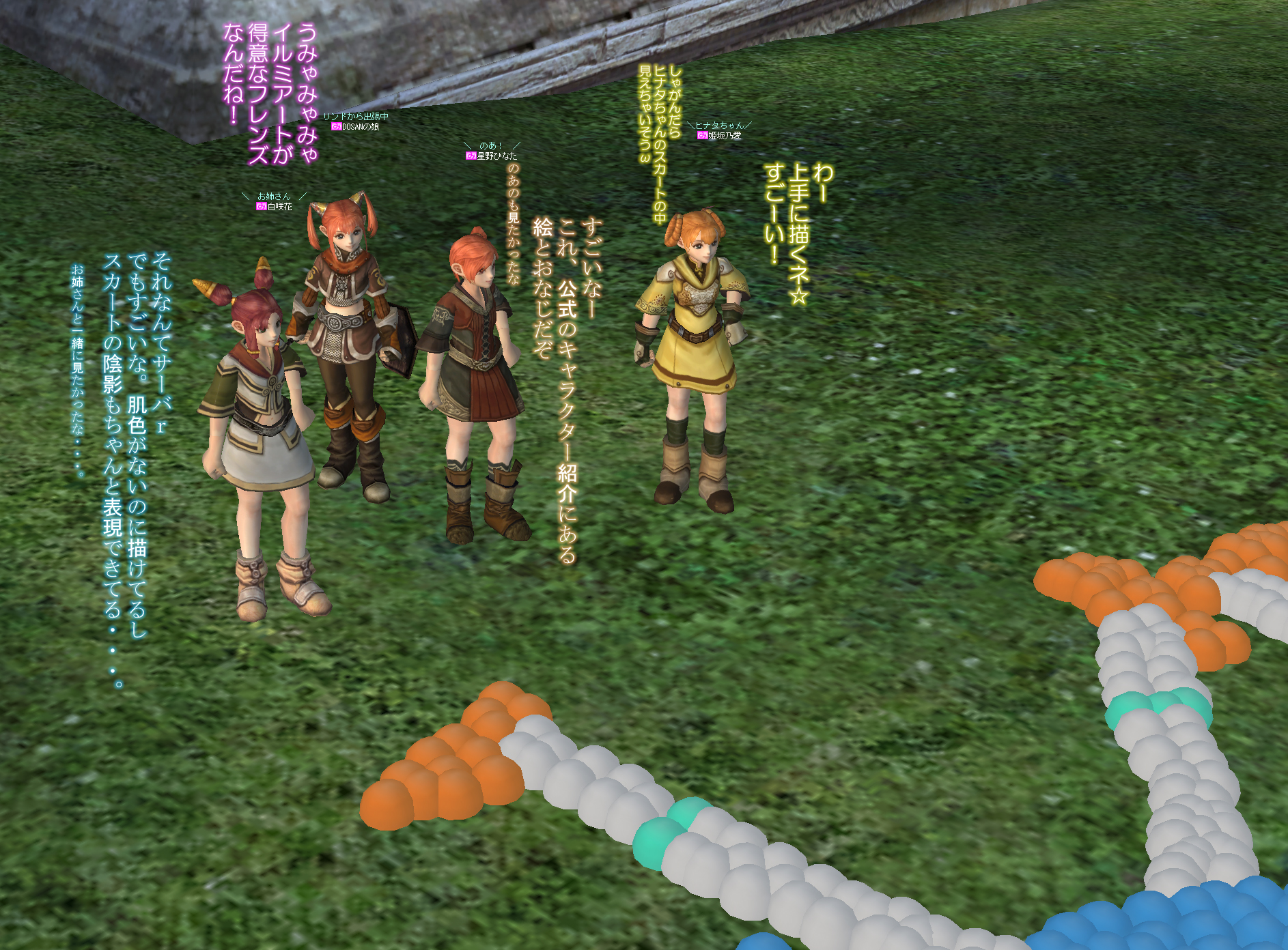 主な観客はエプイさん、わためさん、ハーブ・フォースさん、暁美ほむらさん、グレン・ラガンさん。そして、ヴァラカスサーバから遥々お越しくださいましたイルミネーションアーティストのまいちゃんさんでした。