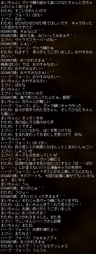 一般チャットで行われた実際の「オンライン☆わたてにんぐ劇場」のチャットログはこちらから。