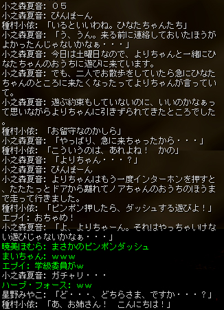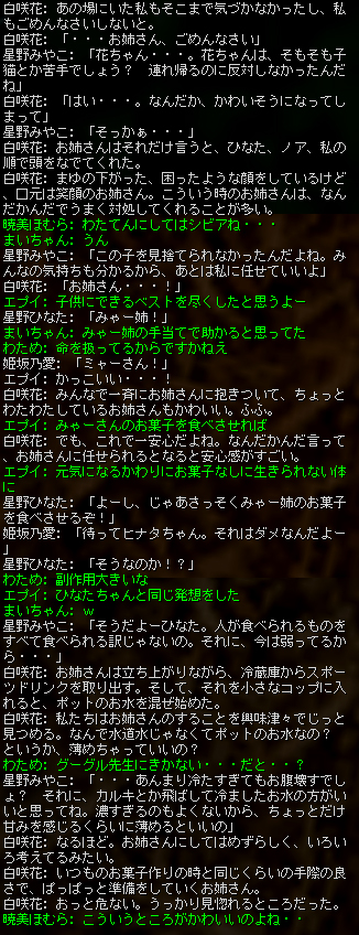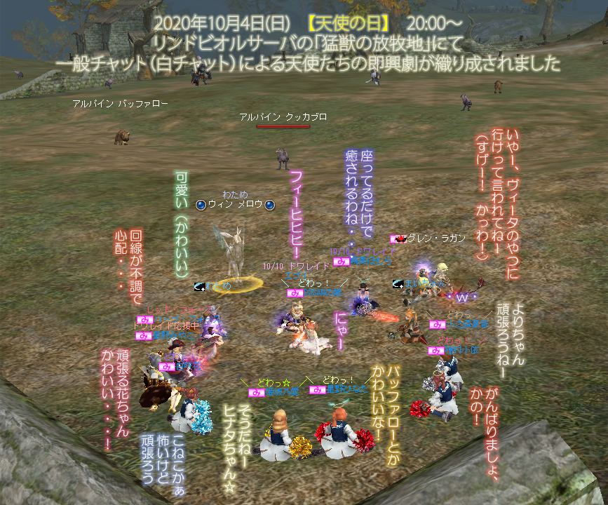 このところ恒例となってきておりますが、同盟員だけでなく「天使たちのお友だち」を主な対象とした即興劇を、人数制限のない一般チャット(白チャット)にて実施してくださいました。