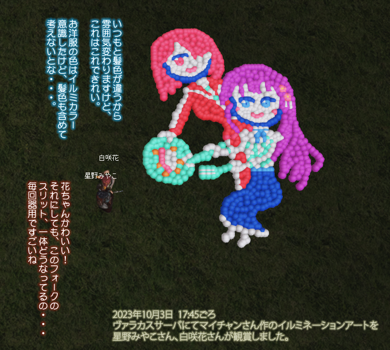 作品につきましてはいつも通り、花さんがヴァラカスサーバにて撮影してくださいましたので本ページ下部に掲載させていただきます。