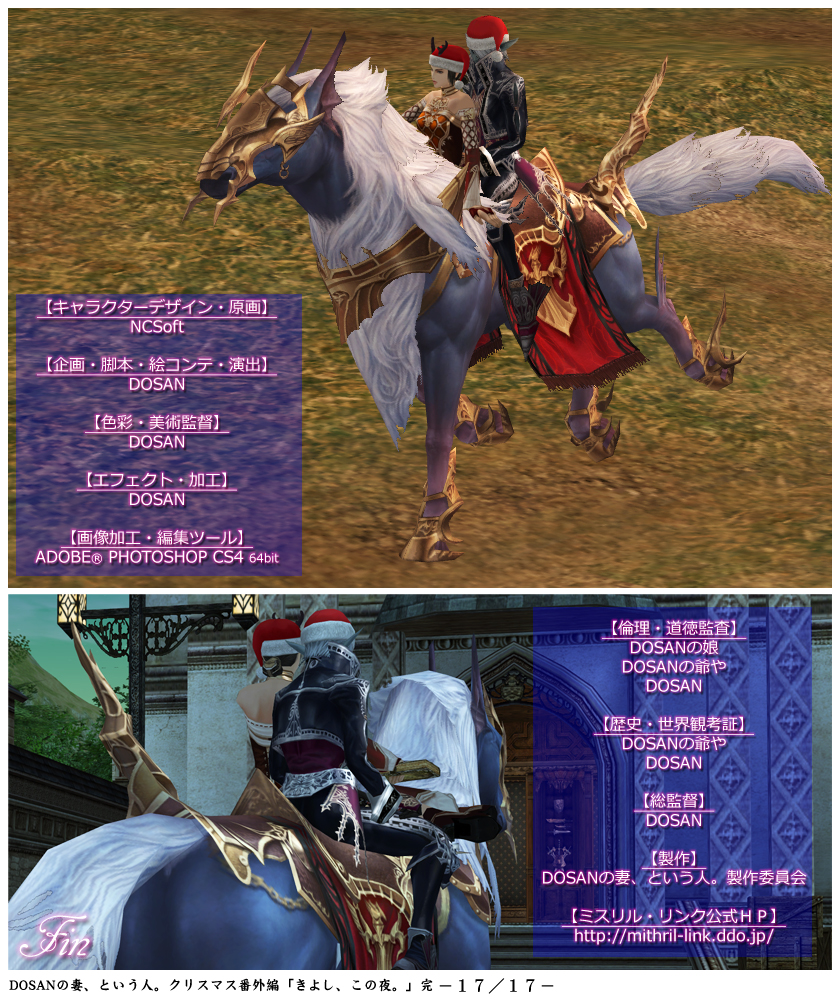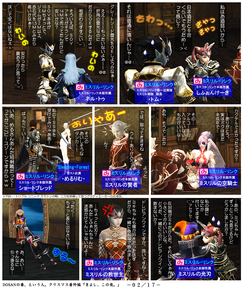 今回のクリスマス番外編は、上記のうち「ミスリルの救世主(ミキさん)」と「ミスリルの光刃(ミコさん)」