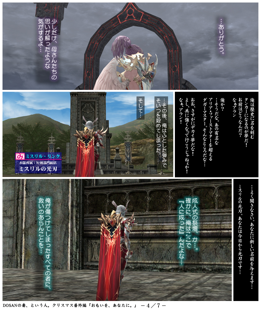 今年の番外編はいかがでしたでしょうか。ミスリルを冠する者のみなさんはそれぞれ異なるベクトルの思いを持っていますが、今回はそれぞれにとって特別な人への思いをテーマとしました。