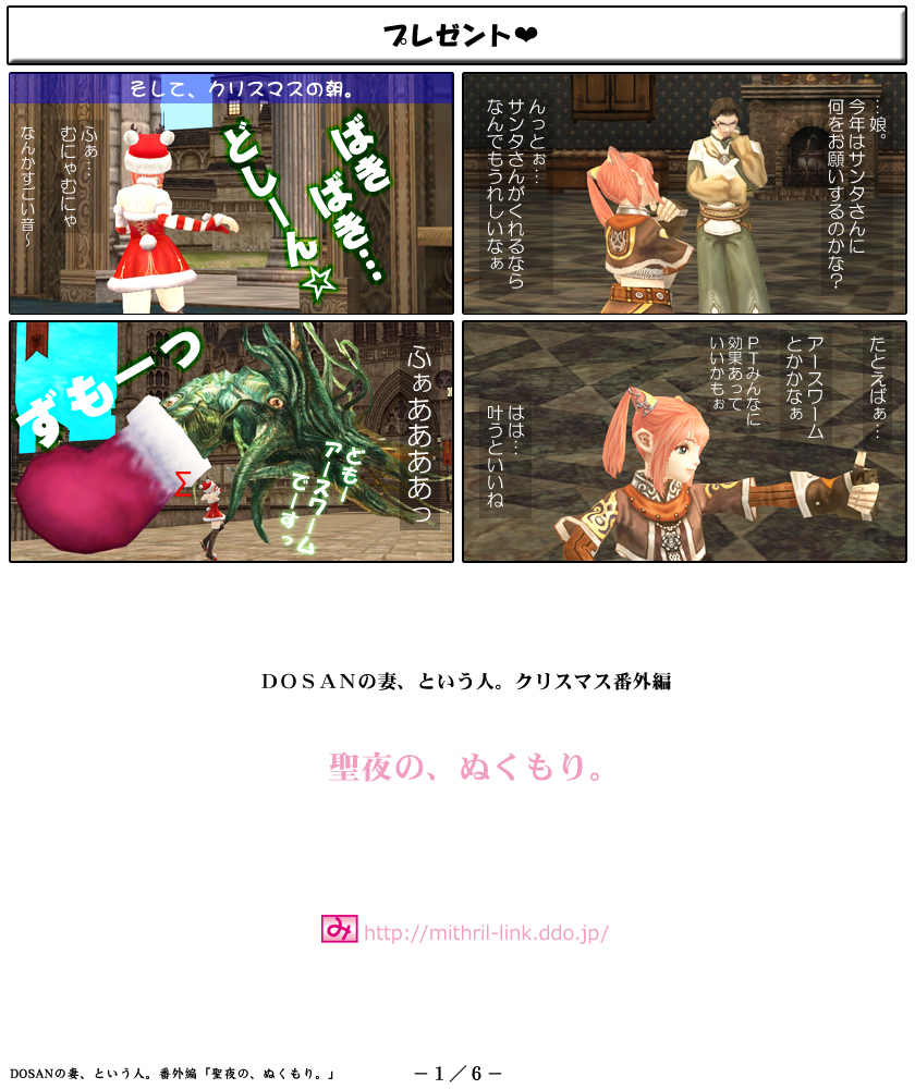 内容はいつものDOSAN家およびミスリルを冠する者のみなさん、そしてたかちさんやネルさんといった