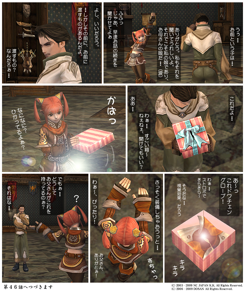 DOSANはお話の続きをする前に、爺やから預かったプレゼントを渡そうとします。