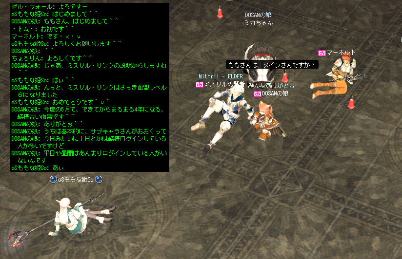 久しぶりの新規入隊の人ってこともあって、血盟チャットがとってもにぎやかに^^