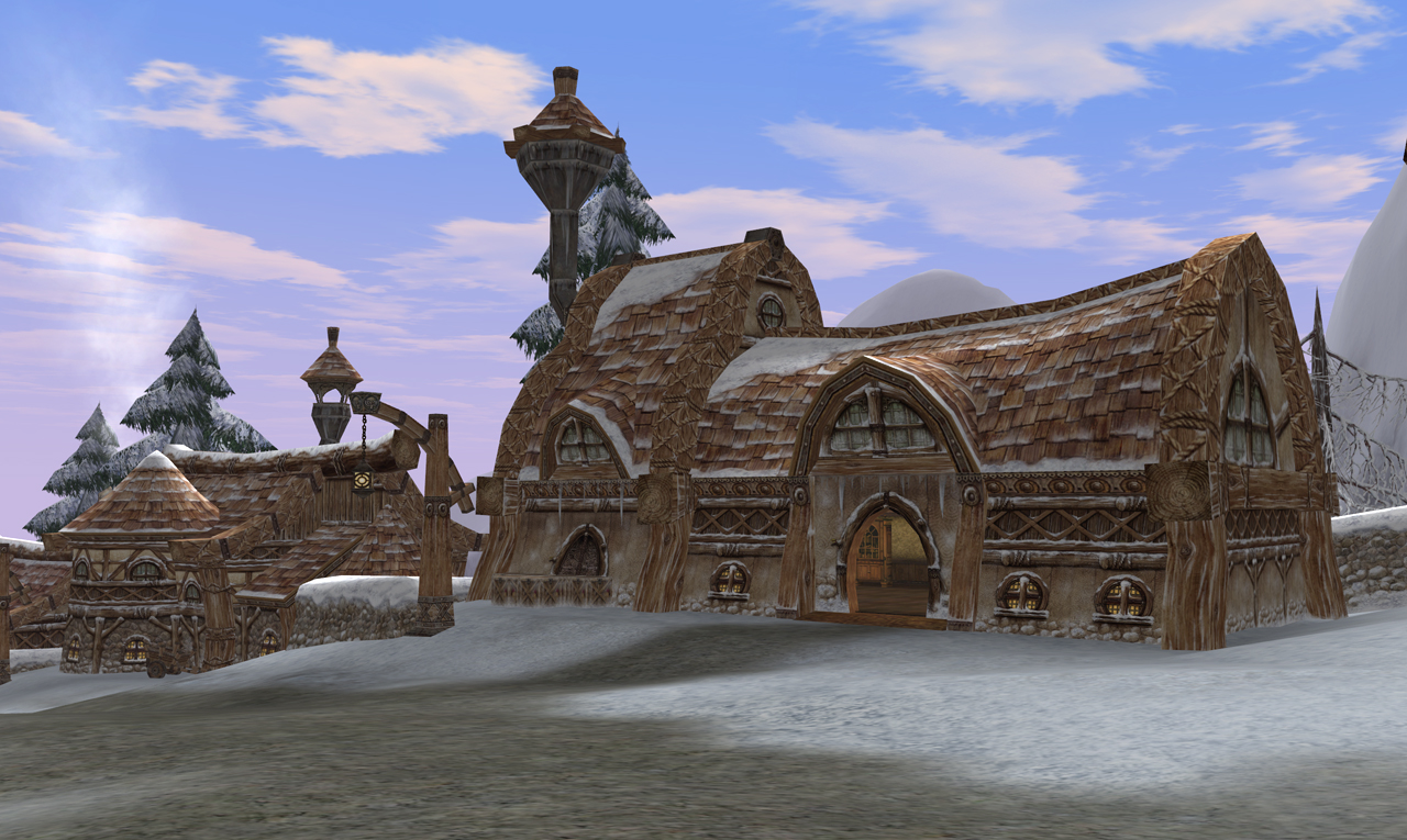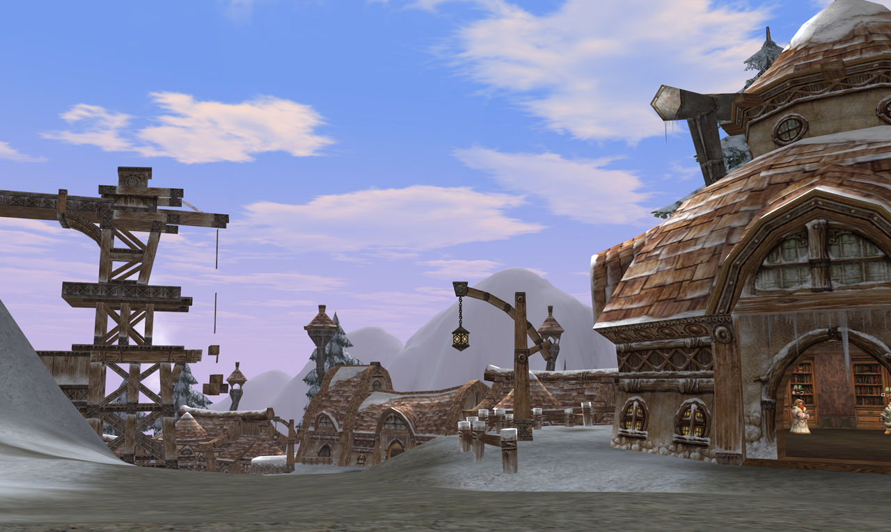 シュチュッツガルト領地に存在するこのドワーフ村は、一年中雪に閉ざされた村じゃ。今ではシュチュッツガルトよりも北に位置する一続きの陸地となっていますが、昔は歩いては行けない場所じゃったからの。今のヘルバウンドのように、隔絶された地域になっていたんじゃよ。いつのアップデートじゃったか、陸地が統合されてドワーフ村・オーク村に歩いて行けるようになったんじゃな。