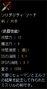 これなんじゃがの。説明にあるとおりヒューマンとエルフの絆を証明するものとして、ヒューマンからエルフに捧げられたものじゃった。永久に錆びることのない、ミスリル製の刀剣をの。しかし、前述のようなことになってしまった為にこのソードはエルフによりへし折られ、捨てられてしまうのじゃ。